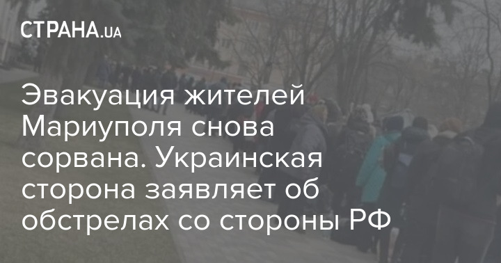 Украинская сторона заявила, что эвакуация людей из Мариуполя сегодня в очередной раз сорвана, так как российские войска открыли огонь.
