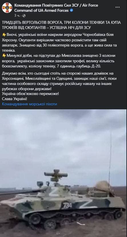 11:50 "Хорошо накрываем. Довалите их!" - отчитался о работе ВСУ, которая защищает аэропорт в Николаеве, губернатор.