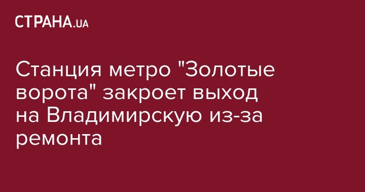 В Киеве в течение предстоящих выходных - 29 и 30 октября, а также 12-13 ноября на станции метро "Золотые ворота" не будет работать выход в направлении улицы Владимирской. Об этом сообщает пресс-служба "Киевского метрополитена".
