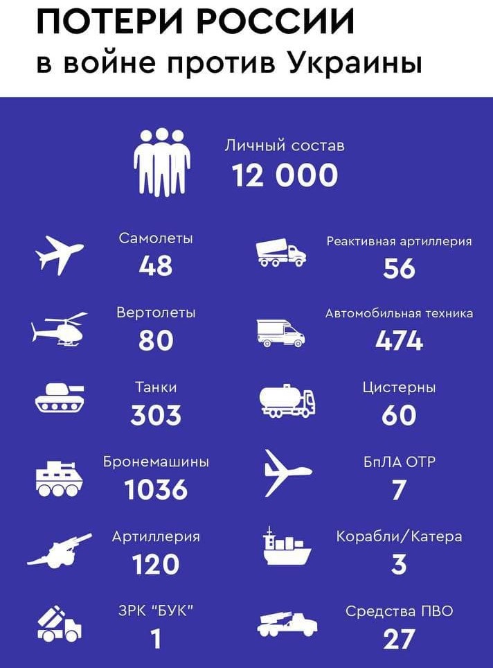 11:42 Новое видео Зеленского. Сказал, что не может поздравить женщин с 8 марта, пока продолжается полномасштабная террористическая война против нашего народа, когда столько смертей, горя и страданий. "Оккупанты снова бомбили Сумы авиабомбами. Наш мирный город, который никогда в истории не угрожал России. Добрая, тихая, душевная Сумщина, которую превращают в пекло. Мариуполь - мирный и трудолюбивый город без какой-то внутренней злобы. Его окружили, заблокировали, специально истощают, пытают, оккупанты сознательно отключают связь, сознательно блокируют подвоз еды, поставки воды, отключают электрику...". В своем обращении он очередной раз обвинил страны Запада в том, что они ничего не делают для того, чтоб остановить авиа- и ракетные удары россиян по Украине. Не закрывают небо, не дают самолёты и система ПВО.