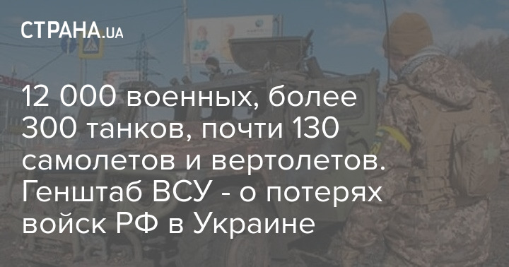 12 000 военных, более 300 танков, почти 130 самолетов и вертолетов. Генштаб ВСУ - о потерях войск РФ в Украине