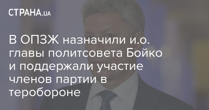 Сегодня, 8 марта, на заседание политсовета партии ОПЗЖ (в режиме видеоконференции) принято решение в условиях военного положения временно возложить исполнение обязанностей председателя Политического совета партии на сопредседателя ОПЗЖ Юрия Бойко.