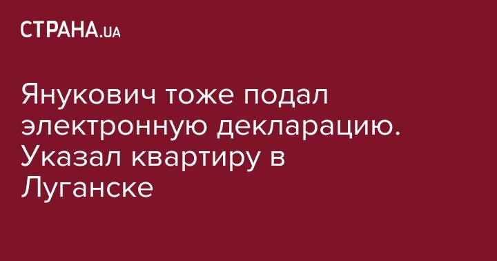 В декларации госслужащего говорится, что Янукович является собственником квартиры в Луганске общей площадью 73,1 кв.м стоимостью порядка 131 тысяча 041 гривна.