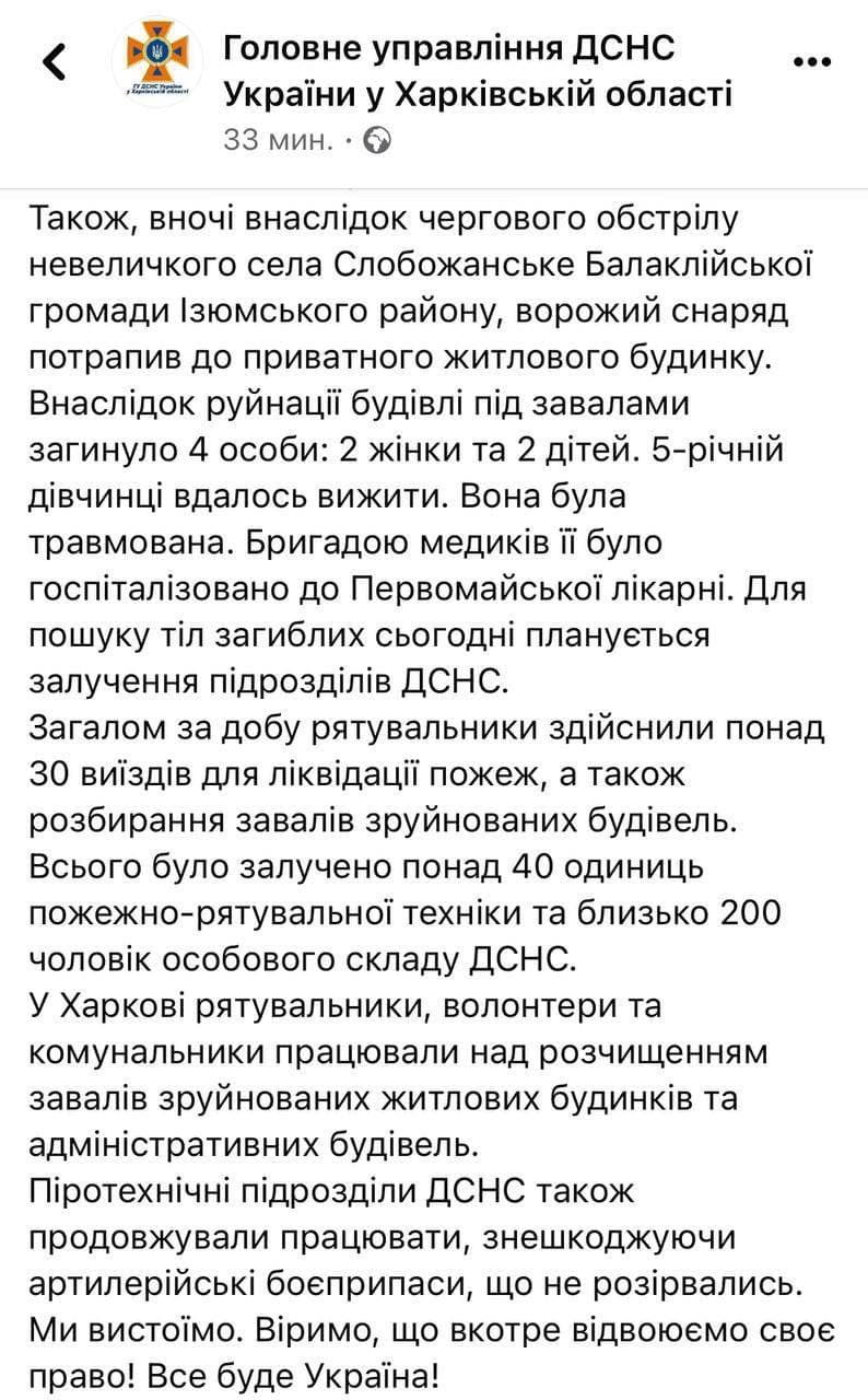 19.21 Мэр Харькова Игорь Терехов заявил о разрушении 400 домов в ходе обстрелов города.