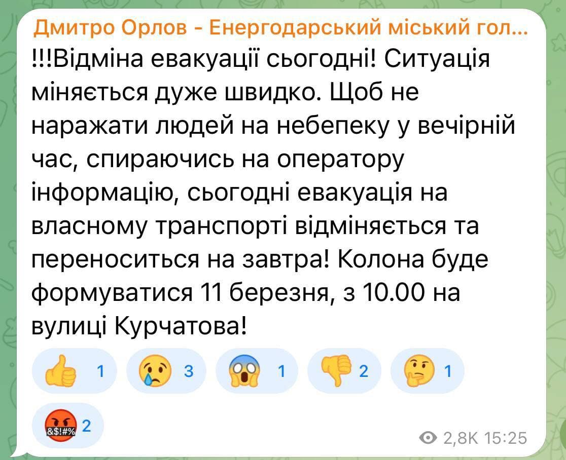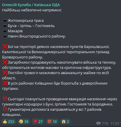08:00 На сегодня запланировано три гуманитарных коридора для эвакуации мирных жителей из Сумской области: Сумы - Полтава, Тростянец - Полтава и Краснополье - Полтава. Начало режима тишины и движение колонн предварительно запланировано на 09:00.