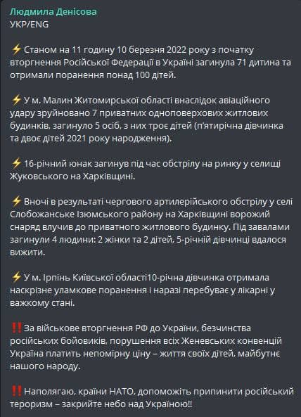 - О российских обстрелах: "То, что происходит - военное преступление и преступление против человечества в отношении Украины и украинцев. Которым нет ни объяснений, ни оправданий"
