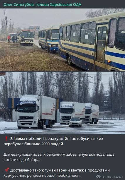 - Из Изюма в город Лозовая удалось выехать около 3 тыс. человек,