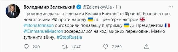 - Запад должен сделать всё, о чём просит Украина. "Сейчас мы видим беспрецедентное объединение западного мира. За что огромное спасибо нашим международным партнерам"
