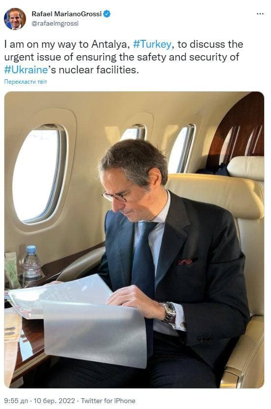 Глава МАГАТЭ срочно вылетел к Кулебе и Лаврову в Турцию, чтобы обсудить безопасность ядерных объектов Украины