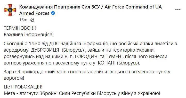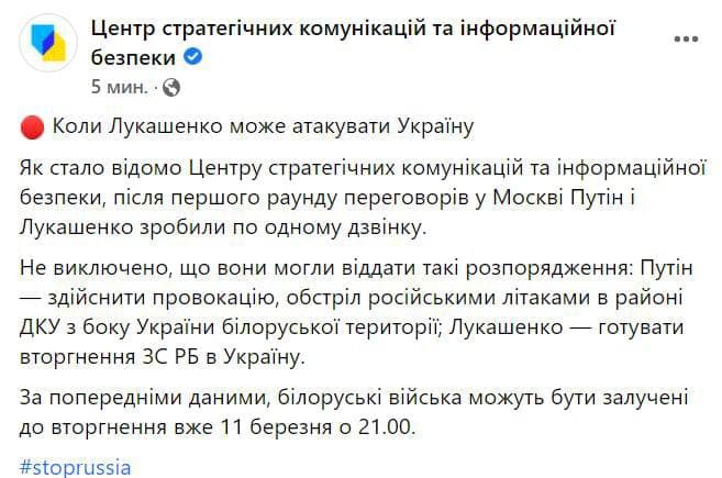 "Украина атаковала бы Беларусь, если бы не превентивный удар со стороны России", - заявил Лукашенко, оправдывая тот факт, что предоставил свою территорию российским войска для нападения на Украину.