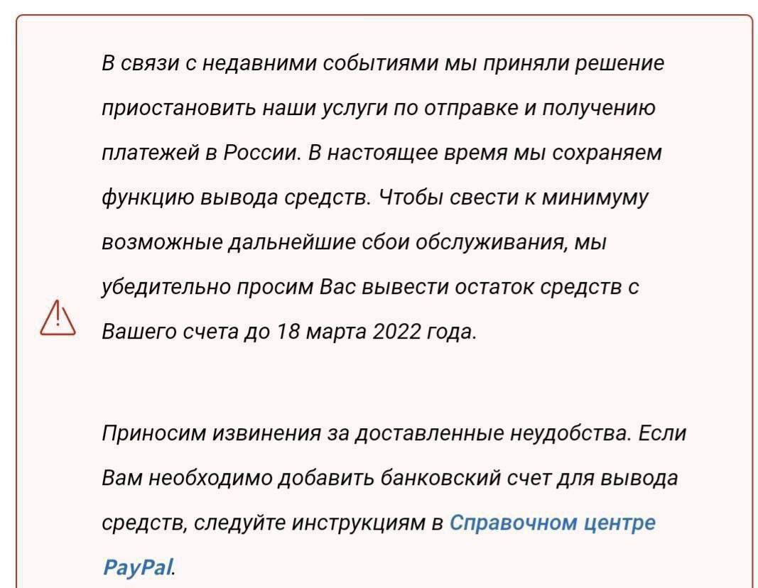 20.08 PayPal предупредил о блокировании электронных кошельков россиян с 18 марта.
