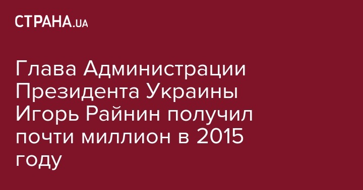 Глава АП Украины Игорь Райнин подал электронную декларацию, аналогичную той, что предоставлял за 2015 год. Об этом свидетельствуют его данные в Едином государственном реестре деклараций лиц, уполномоченных на исполнение функций государства или местного самоуправления.