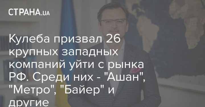 Министр иностранных дел Дмитрий Кулеба призвал крупные западные компании, которые до сих пор не ушли из России, сделать это.