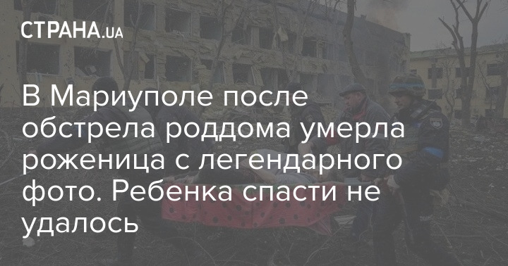 После обстрела российскими войсками роддома в Мариуполе, умерла одна из беременных женщин, которая пострадала вследствие авиаудара по роддому. Ее нерожденного ребенка также не удалось спасти.