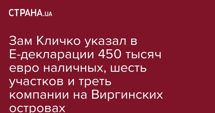 Зампредседателя Киевской городской государственной администрации (КГГА) Алексей Резников указал в своей электронной декларации €450 000 наличными и долю в 33% от компании Life Earth, зарегистрированной на Британских Виргинских островах (BVI) в 2015 году. Об этом свидетельствуют данные Единого государственного реестра деклараций лиц, уполномоченных на исполнение функций государства или местного самоуправления, сообщают Украинские новости.