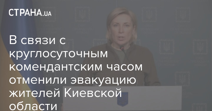 "В связи с введением круглосуточного комендантского часа эвакуация в Киевской области завтра, к сожалению, проводиться не будет", - сказала она.