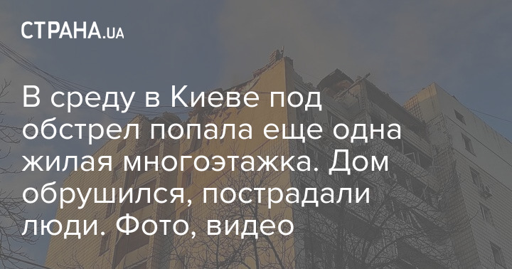 В среду в Киеве под обстрел попала еще одна жилая многоэтажка. Дом обрушился, пострадали люди. Фото, видео