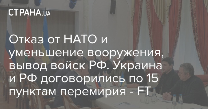 Отказ от НАТО и уменьшение вооружения, вывод войск РФ. Украина и РФ договорились по 15 пунктам перемирия - FT