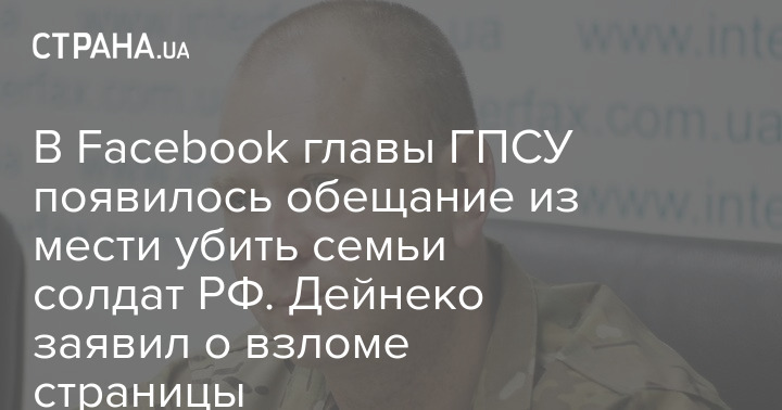 В Facebook главы ГПСУ появилось обещание из мести убить семьи солдат РФ. Дейнеко заявил о взломе страницы