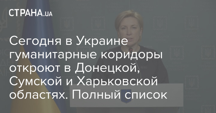 Министр по вопросам реинтеграции временно оккупированных территорий Украины Ирина Верещук рассказала о работе гуманитарных коридоров на территории Украины в пятницу, 18 марта.