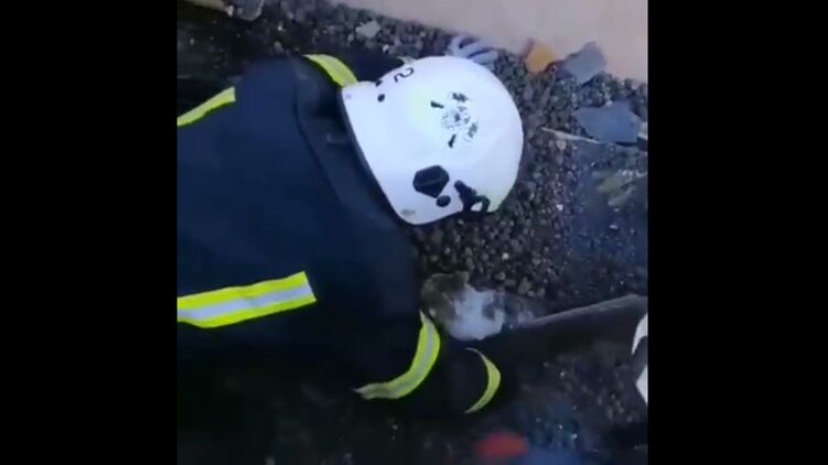 Спасателям удалось вытащить из-под завалов пострадавшего от обстрелов дома кошку. Соответствующее видео опубликовано в соцетях.