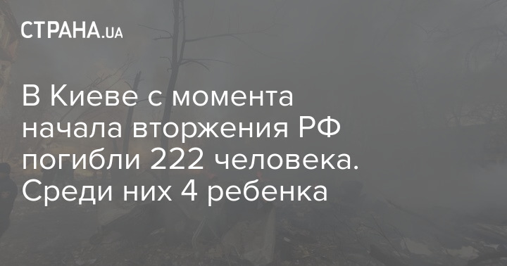 В Киеве с момента начала вторжения РФ погибли 222 человека. Среди них 4 ребенка