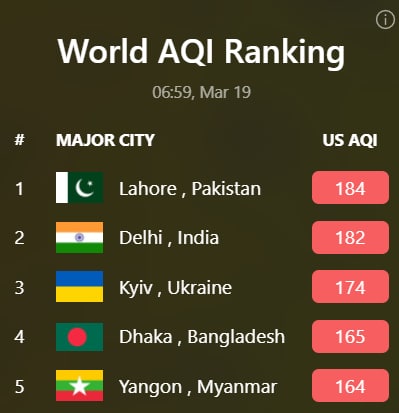 Сервисы слежения за атмосферой показывают, что украинская столица сейчас третья по загрязнению в мире.