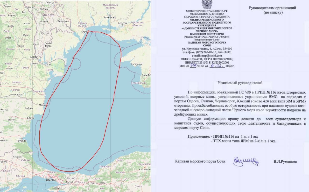 10.59 Россия объявила о том, что северо-западная часть Чёрного моря (то есть фактически вся акватория, примыкающая к Украине) опасна для судоходства из-за украинских мин.