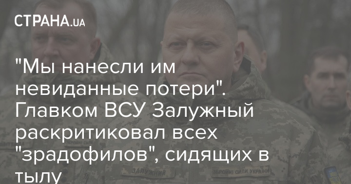 "Мы нанесли им невиданные потери". Главком ВСУ Залужный раскритиковал всех "зрадофилов", сидящих в тылу