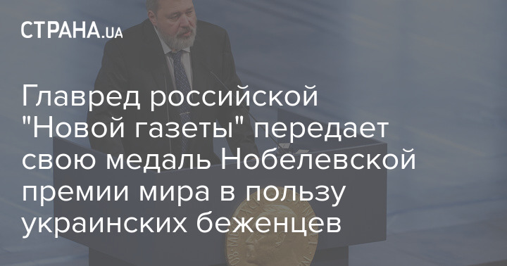 Главред российской "Новой газеты" передает свою медаль Нобелевской премии мира в пользу украинских беженцев