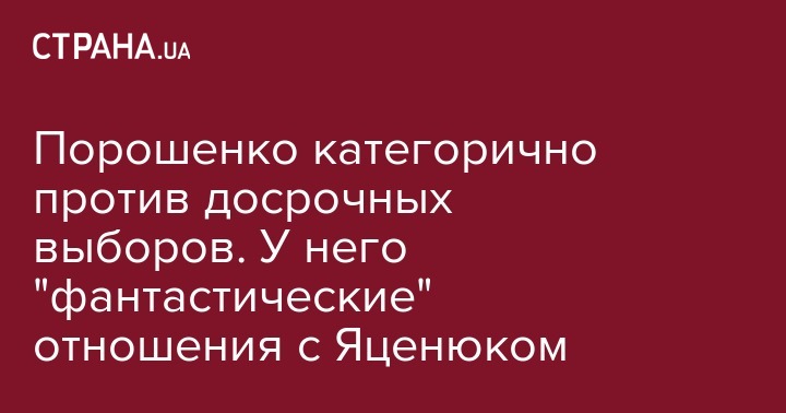 "В парламенте должна быть коалиция, в коалиции должно быть большинство. Три фракции коалиции покинули ее. И, согласно нашей Конституции, или должно быть сформирована новая коалиция, скорее всего, с новым премьер-министром, или досрочно парламентские выборы. Это моя позиция, как президента, а только президент может объявлять досрочно парламентские выборы, - никогда!" - приводит слова Порошенко агентство.