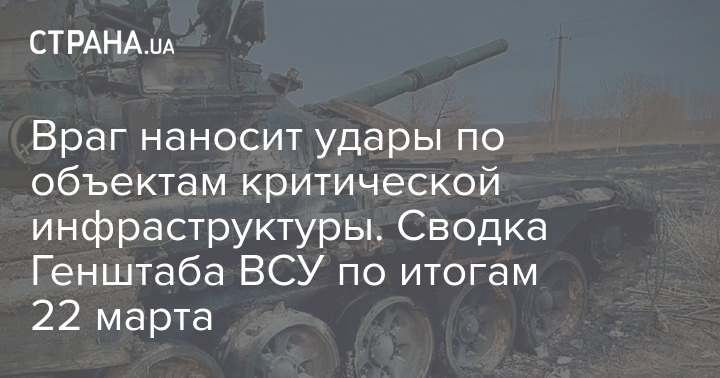 Об оперативной информации по состоянию на 24.00 22 марта 2022 года сообщил Генеральный штаб Вооруженных сил Украины в Facebook.