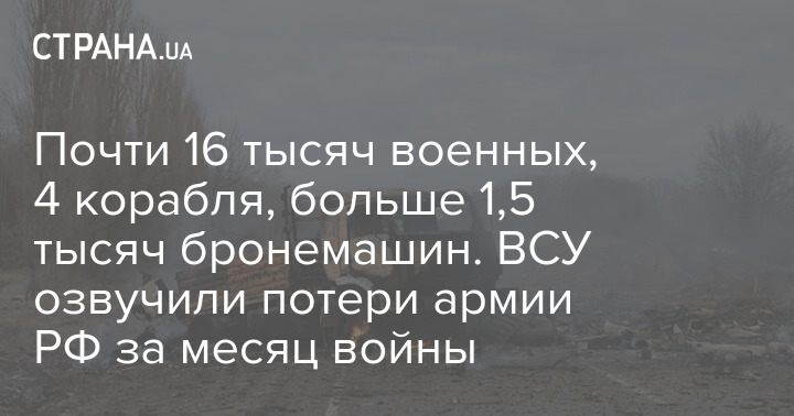 Общие боевые потери противника в Украине, по данным ВСУ, с 24.02 по 24.03 ориентировочно составили: