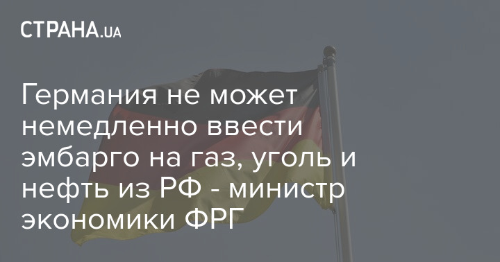 Министерство экономики и защиты климата Германии заявляет, что ФРГ все еще не в состоянии немедленно ввести эмбарго на российские уголь, нефть и газ.