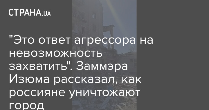 "Это ответ агрессора на невозможность захватить". Заммэра Изюма рассказал, как россияне уничтожают город