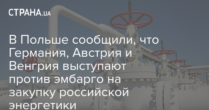 В Польше сообщили, что Германия, Австрия и Венгрия выступают против эмбарго на закупку российской энергетики
