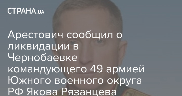 Арестович сообщил о ликвидации в Чернобаевке командующего 49 армией Южного военного округа РФ Якова Рязанцева