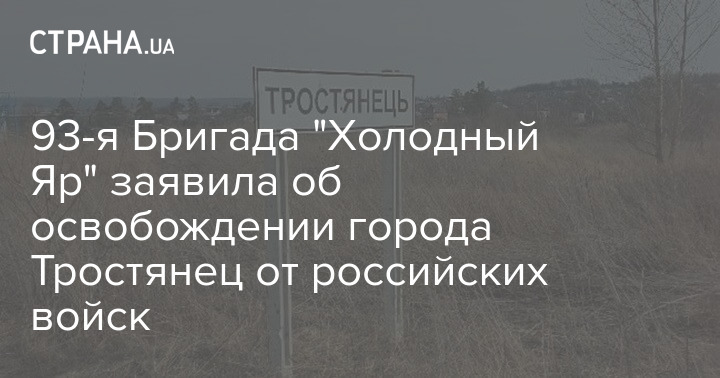 93-я Бригада "Холодный Яр" заявила об освобождении города Тростянец от российских войск