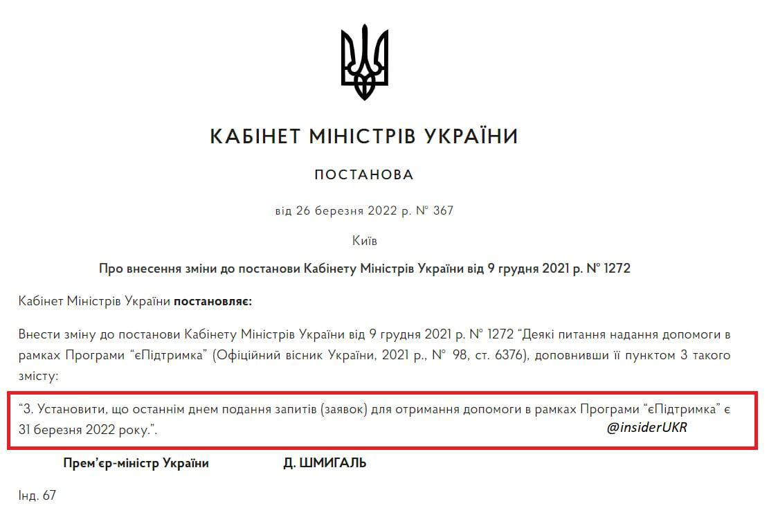 Согласно документу от 26 марта, подать заявку на получение выплат в размере 6,5 тысячи гривен ФОПам и почти всем официально трудоустроенным наемным работникам, которые потеряли возможность заработка из-за активных боевых действий на территории Украины, можно будет лишь до 31 марта.