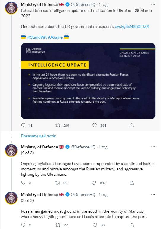 Также там сообщают, что Россия добилась успехов на юге в районе Мариуполя, где продолжаются ожесточенные бои.