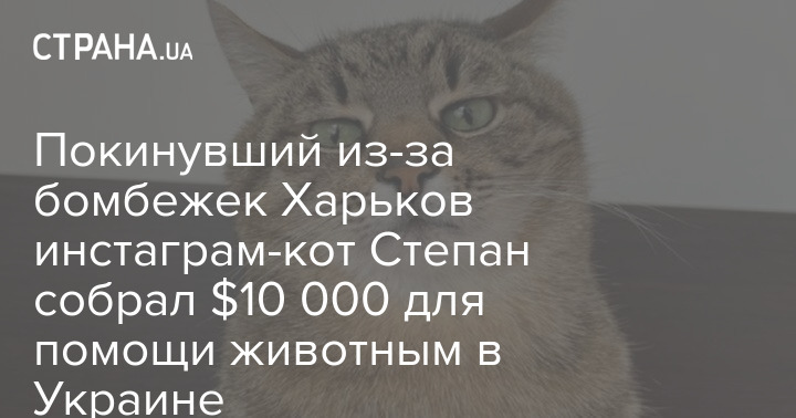 Самый популярный кот инстаграма в мире - Степан из Харькова - объявил в соцсети, что смог собрать 10 тысяч долларов на помощь животным Украины, которые пострадали из-за войны.