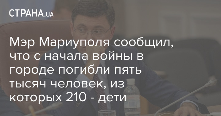 С начала боев за Мариуполь в городе погибли около 5 тысяч человек, из которых около 210 - дети. При этом в осажденном Мариуполе все еще находится 170 тысяч человек.