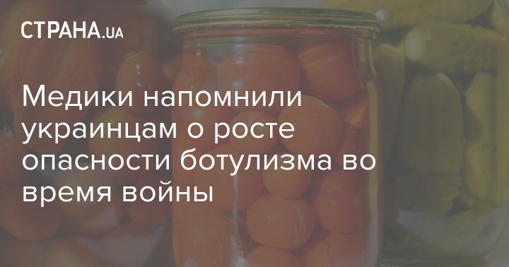 В Центре общественного здоровья напомнили украинцам об опасности ботулизма в связи с тем, что из-за войны многие украинцы оказались в условиях, когда доступа к свежей и качественной пище нет.