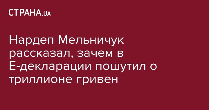 Народный депутат Сергей Мельничук, ранее возглавлявший батальон "Айдар" заявил, что указал в электронной декларации, что владеет триллионом гривен с целью привлечь внимание мирового сообщества. Об этом сообщает ВВС Украина.