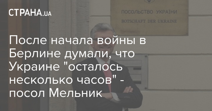 После начала войны в Берлине думали, что Украине "осталось несколько часов" - посол Мельник