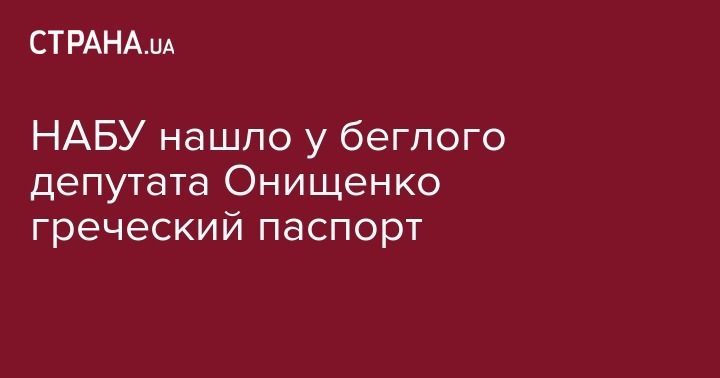 Национальное антикоррупционное бюро (НАБУ) обнаружило у объявленного в розыск народного депутата Александра Онищенко (группа "Воля народа") паспорт гражданина Греции. Об этом передают "Украинские новости".