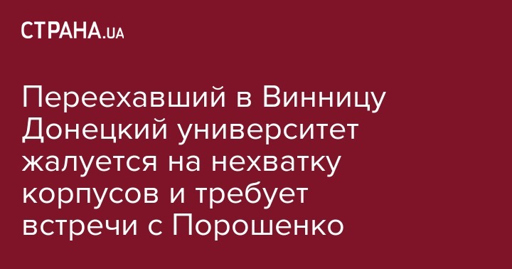Переехавший в Винницу Донецкий университет жалуется на нехватку корпусов и требует встречи с Порошенко