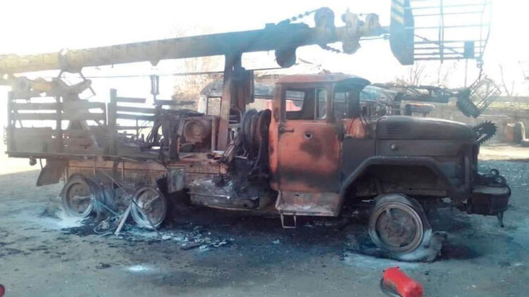 Разрушенная накануне спецтехника коммунальщиков. Фото: Сергей Гайдай