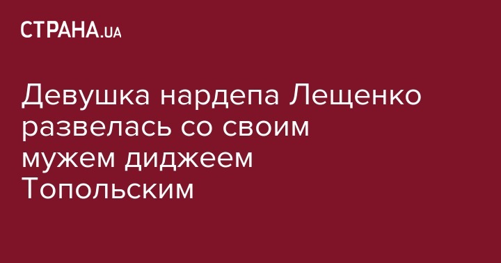 Подруга депутата Верховной Рады Сергея Лещенко Анастасия Топольская развелась с официальным мужем Анатолием Топольским. Об этом передает издание "Буквы" со ссылкой на официальный сайт Бабушкинского районного суда Днепропетровска.