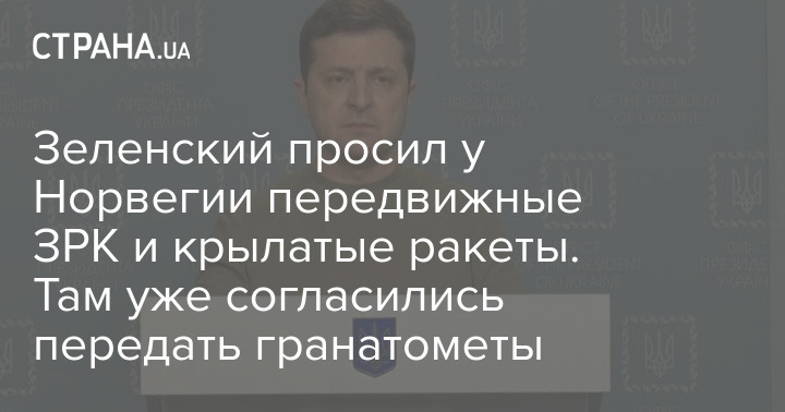 Зеленский просил у Норвегии передвижные ЗРК и крылатые ракеты. Там уже согласились передать гранатометы